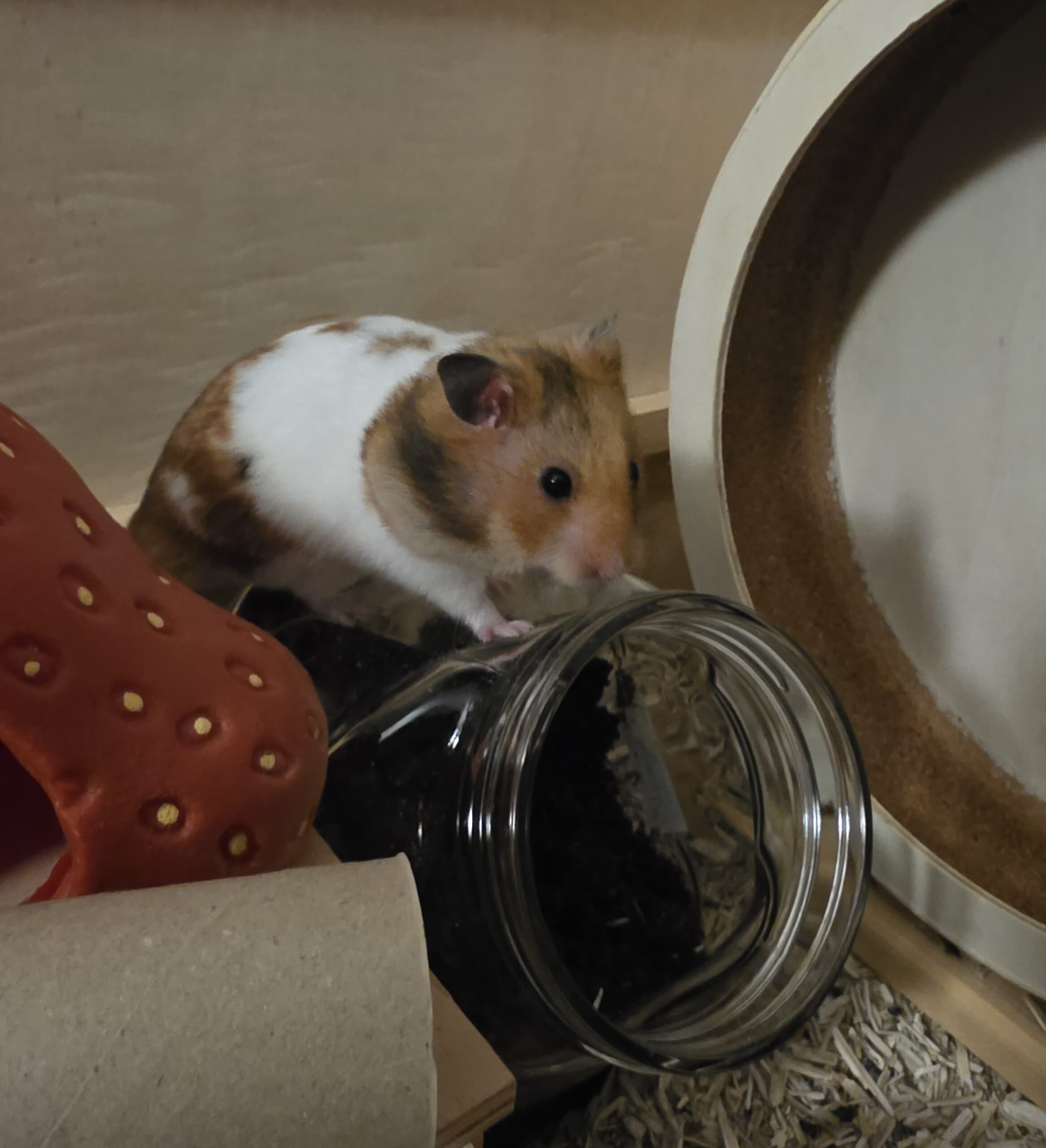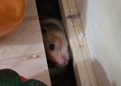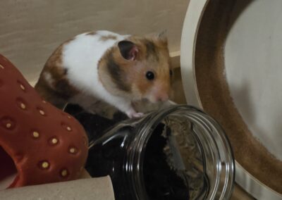 Russell prefers to keep himself to himself and is most active at night, coming out when the lights are off. He loves running on his wheel and quietly going about his business, but he does not enjoy being handled and has no desire for human interaction beyond feeling safe and secure. With time and patience, he has slowly built trust with his foster mum and will now take food from her hand — a big step for him. Russell is only looking for a calm, quiet home with an experienced and understanding adopter who expects nothing more than to care for him and let him live out his days comfortably, on his own terms.